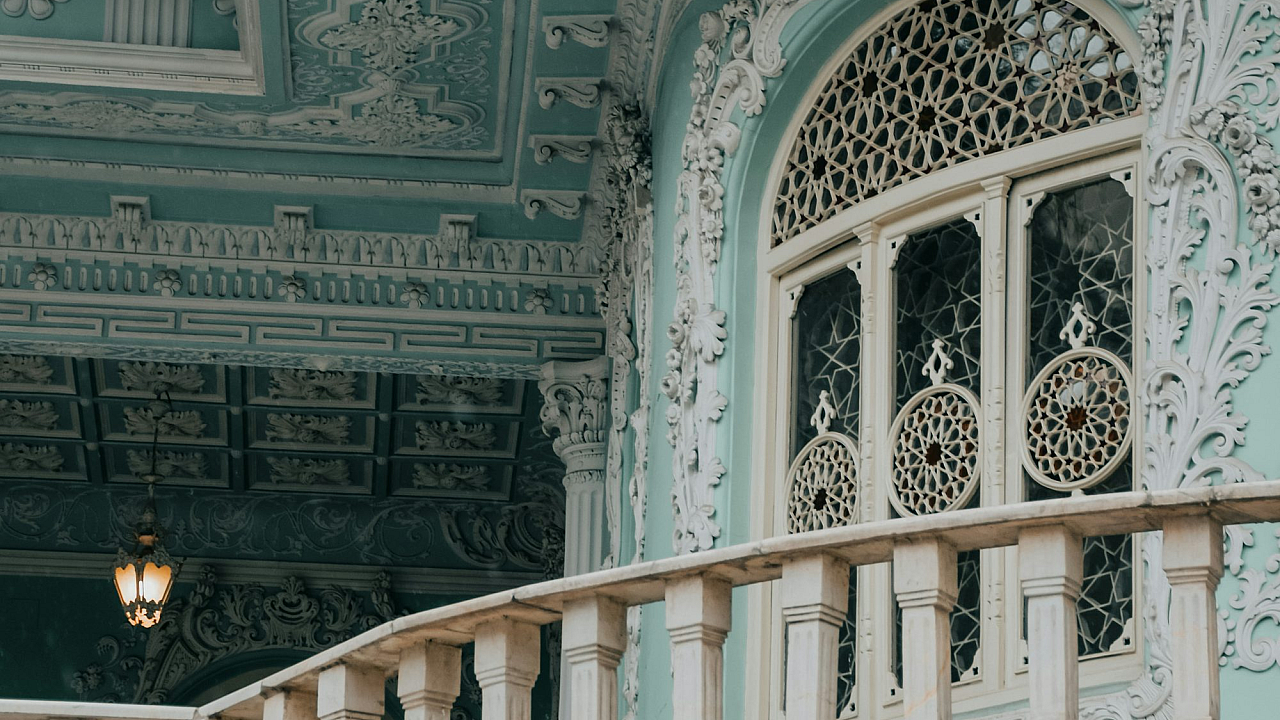 Wallpaper A Balcony with a Balcony Railing and a Light
