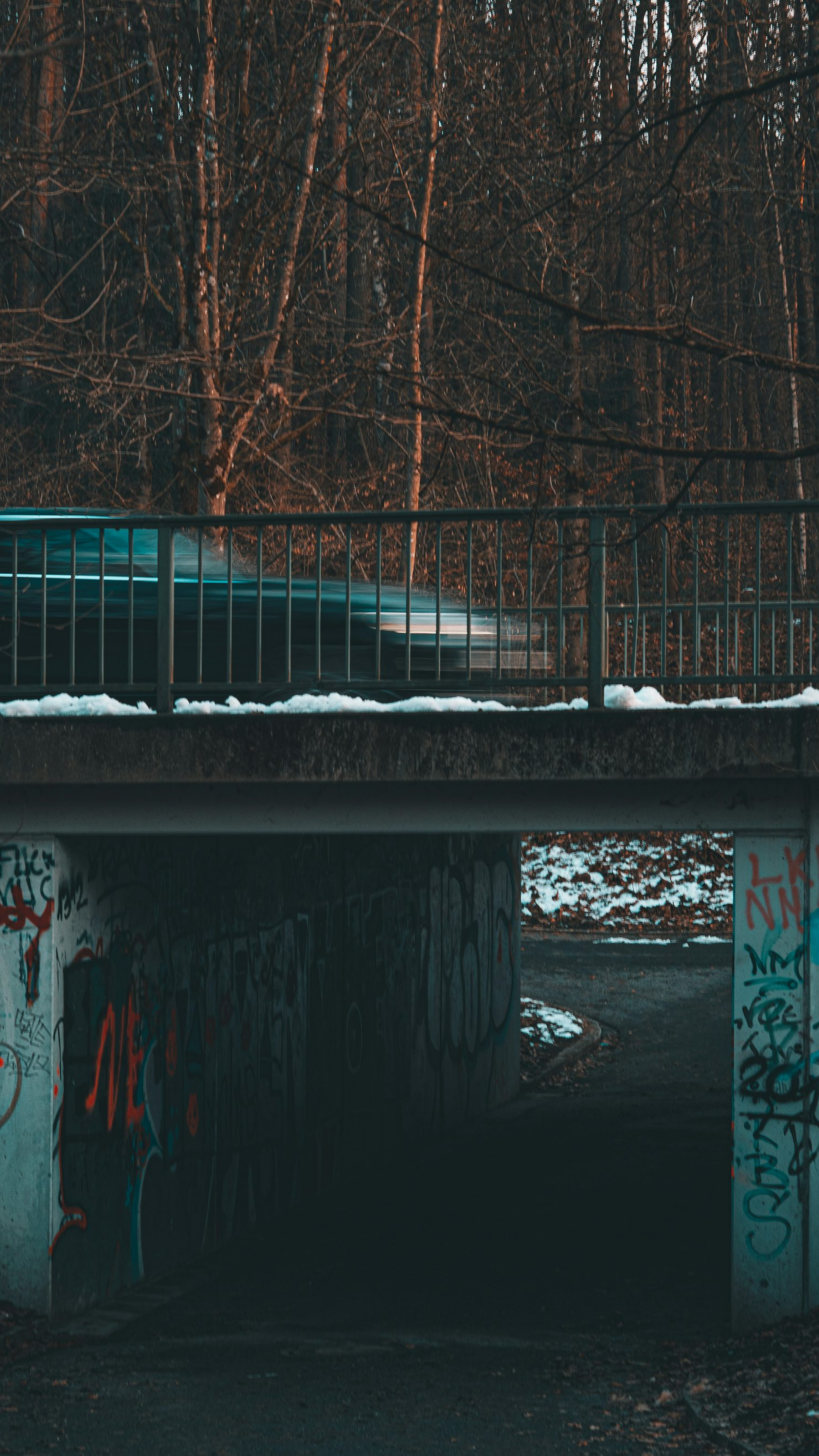 bridge, graffiti, forest, nature, art, urban art, wallpaper, background, landscape, street art