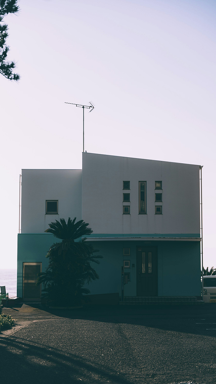 a building with a tower in the background