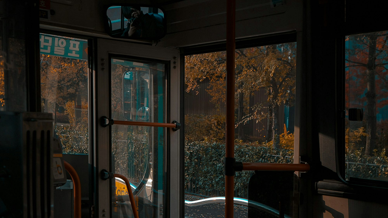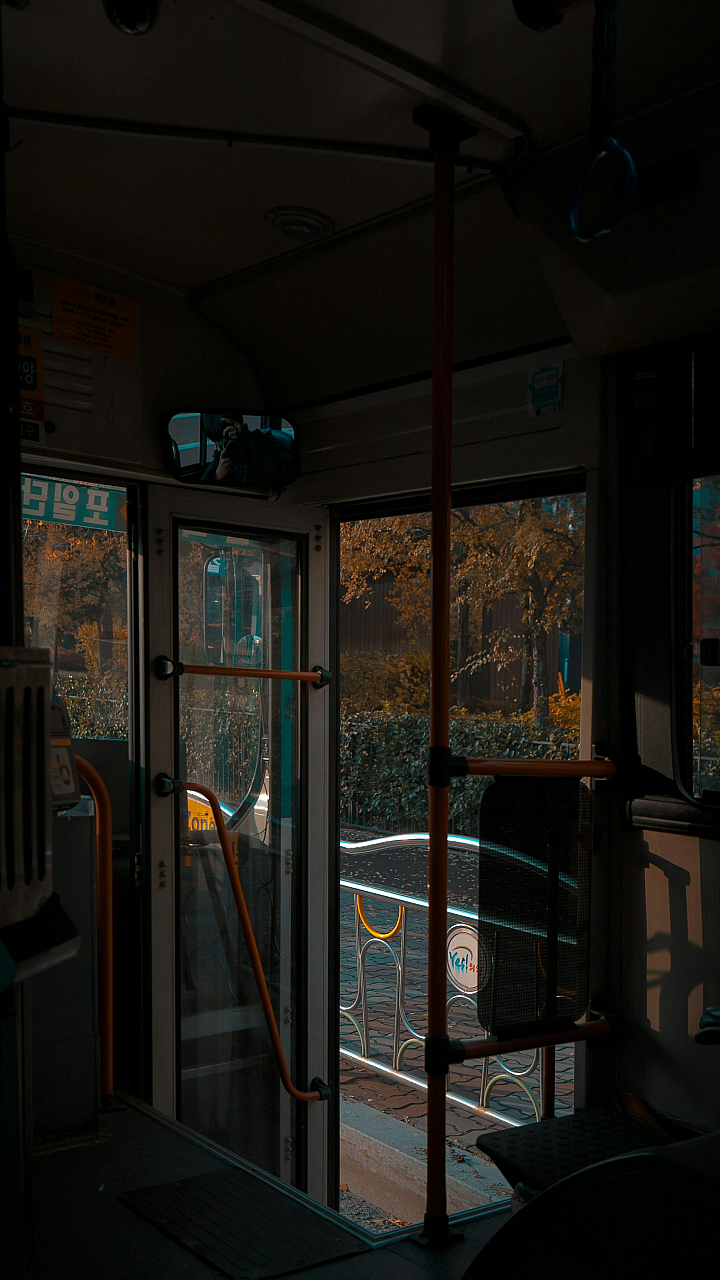 A captivating wallpaper depicting a bus with its doors open at night, creating a mysterious and intriguing atmosphere. Perfect for desktop or mobile backgrounds.