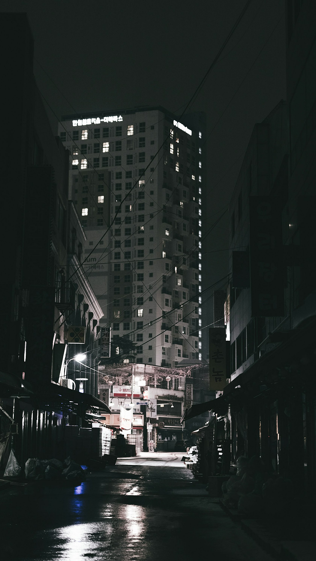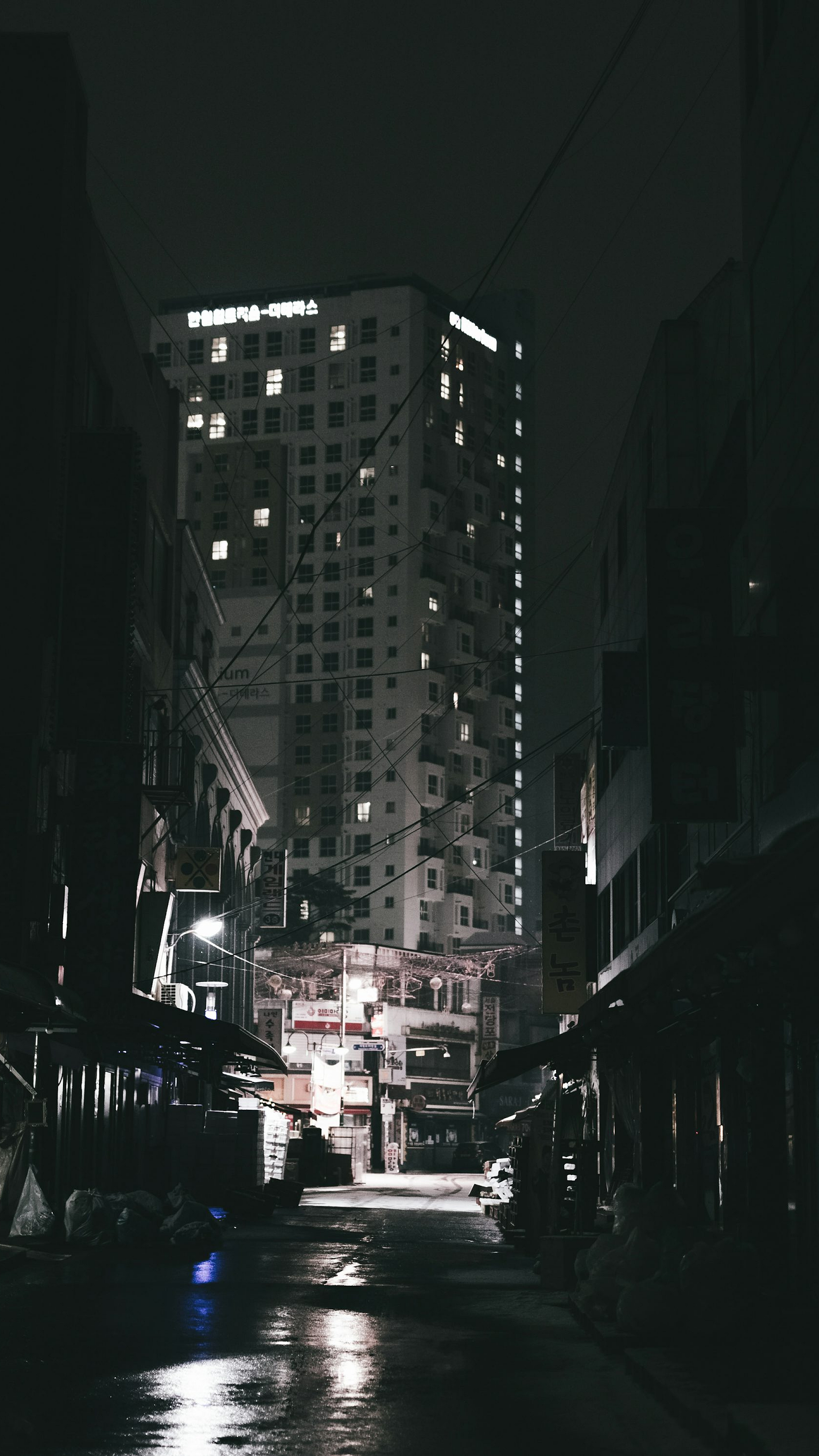Experience the vibrant energy of a city at night. Buildings glow brilliantly, casting a warm light on the street below. A perfect wallpaper for a captivating display.
