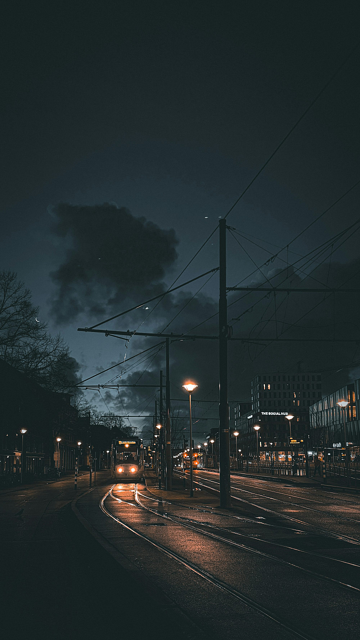 A captivating wallpaper featuring a vibrant city street at night, illuminated by warm streetlights. The scene evokes a sense of urban tranquility and mystery.