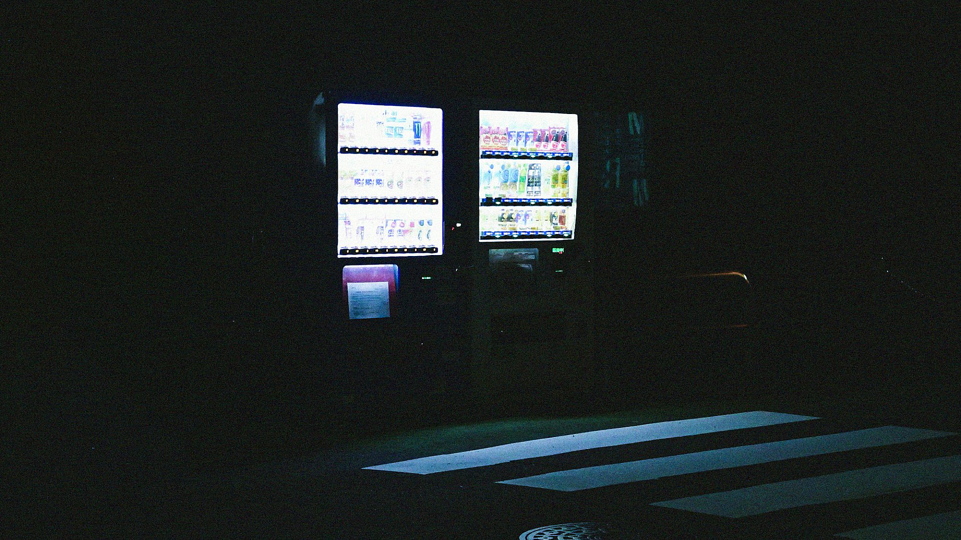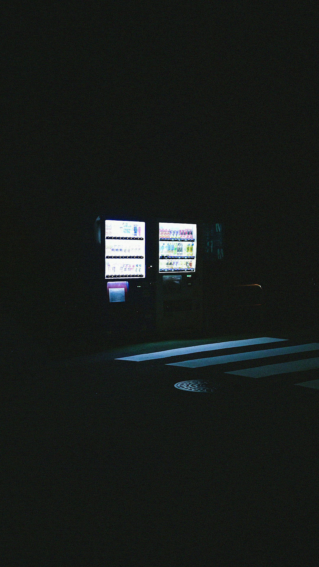 A mysterious and atmospheric wallpaper featuring a dark street at night, with two dimly lit windows offering a glimpse into the unknown. Perfect for fans of dark and moody aesthetics.