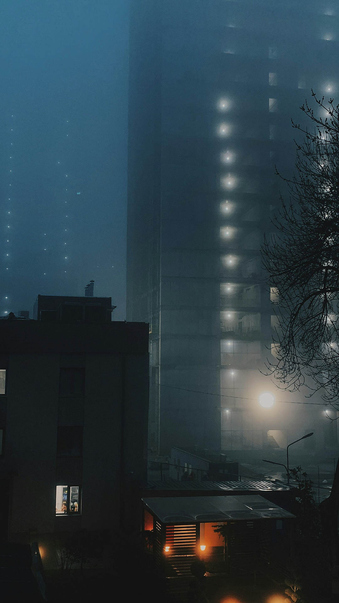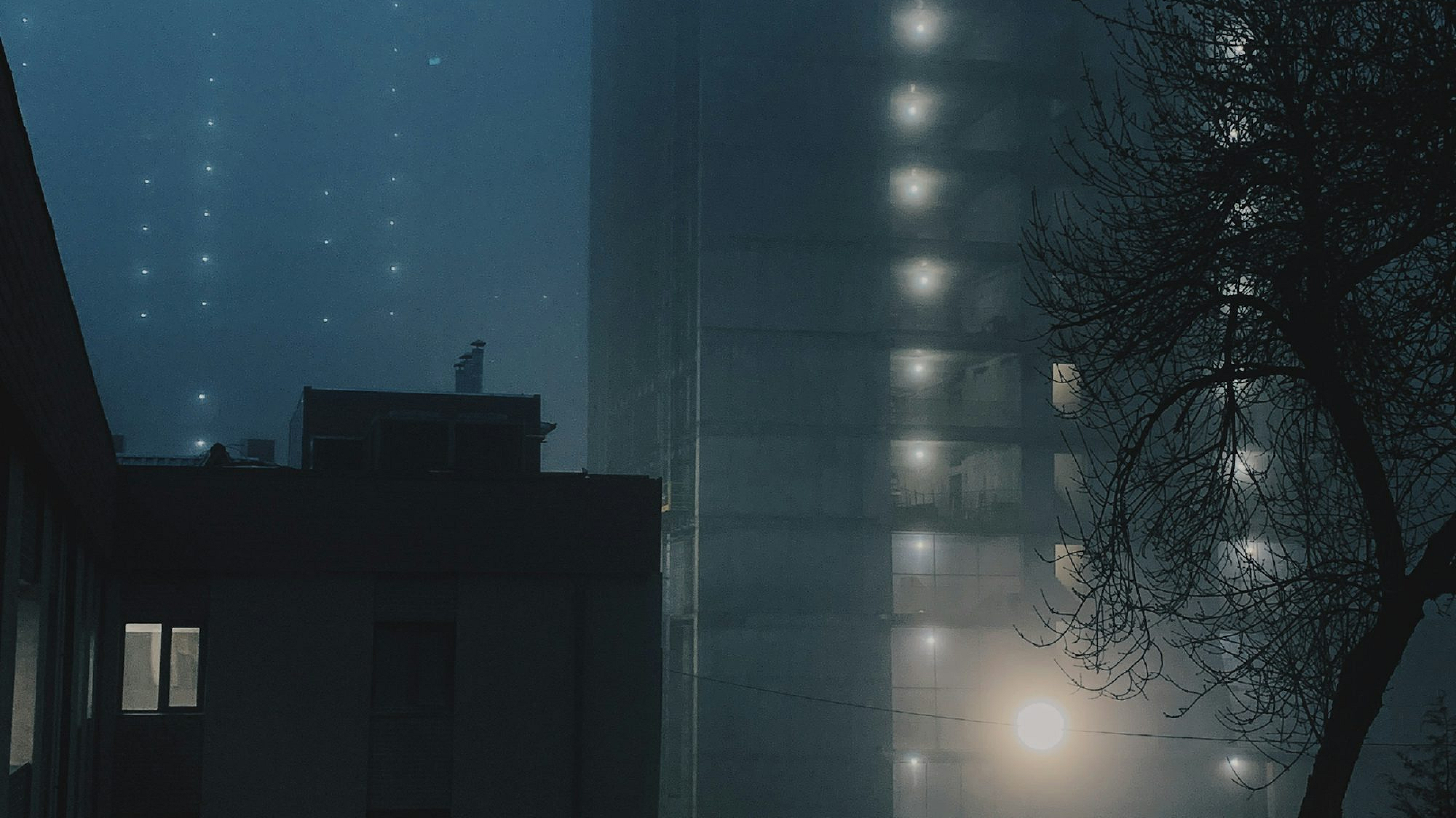Wallpaper A Foggy Night in a City