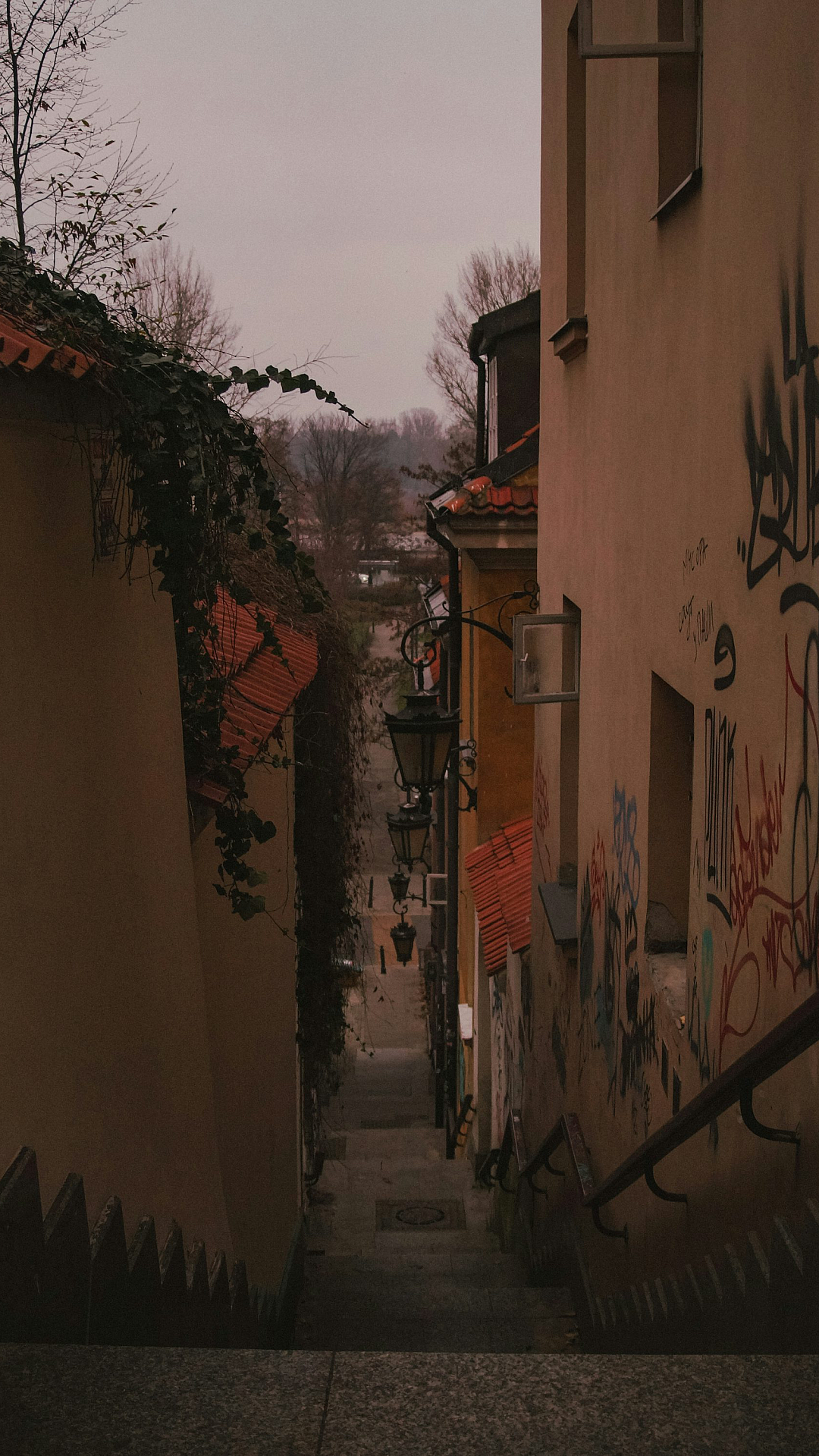 This wallpaper features a narrow alleyway filled with vibrant graffiti art, creating a gritty and urban aesthetic. Perfect for adding a touch of street style to your device.
