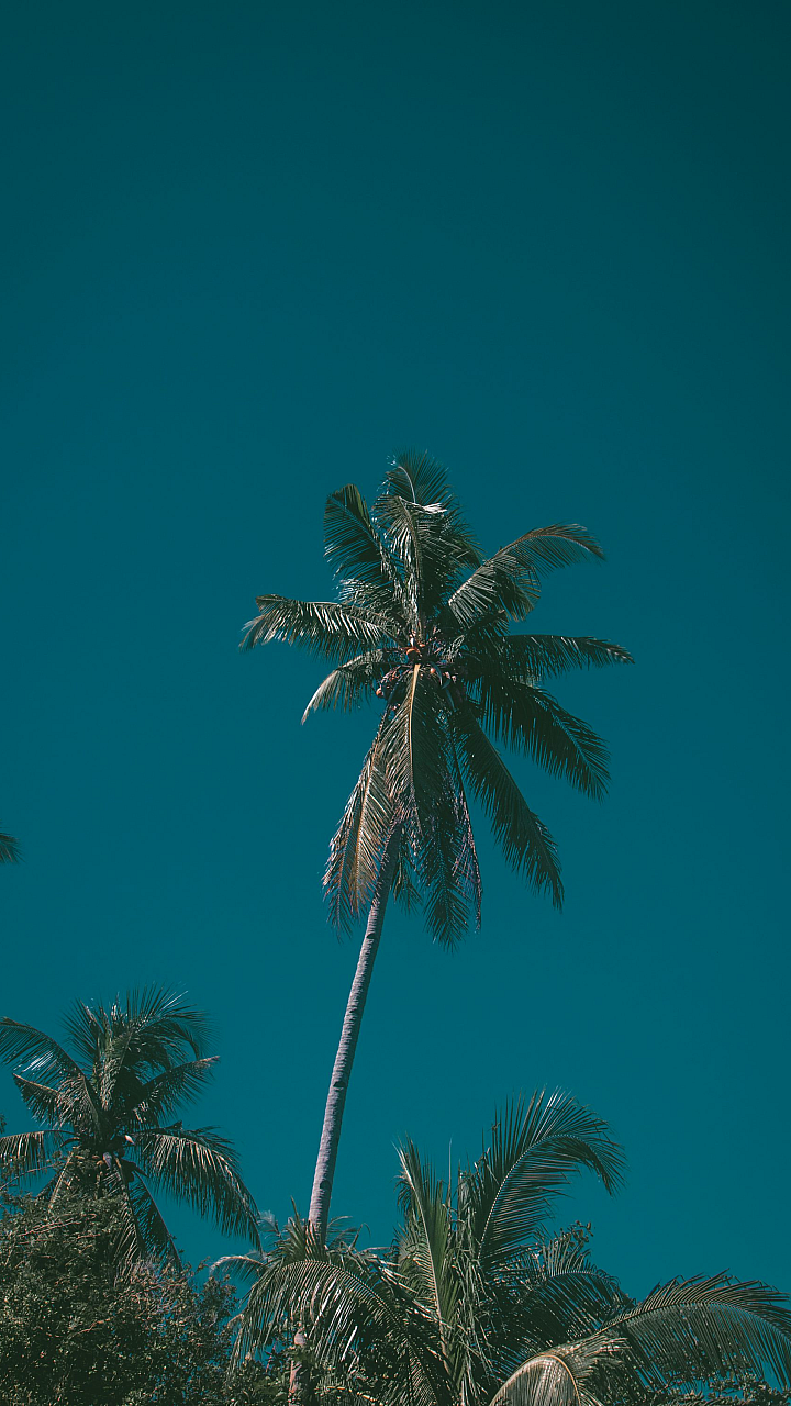 palm tree, blue sky, tropical, beach, summer, vacation, paradise, nature, wallpaper, background