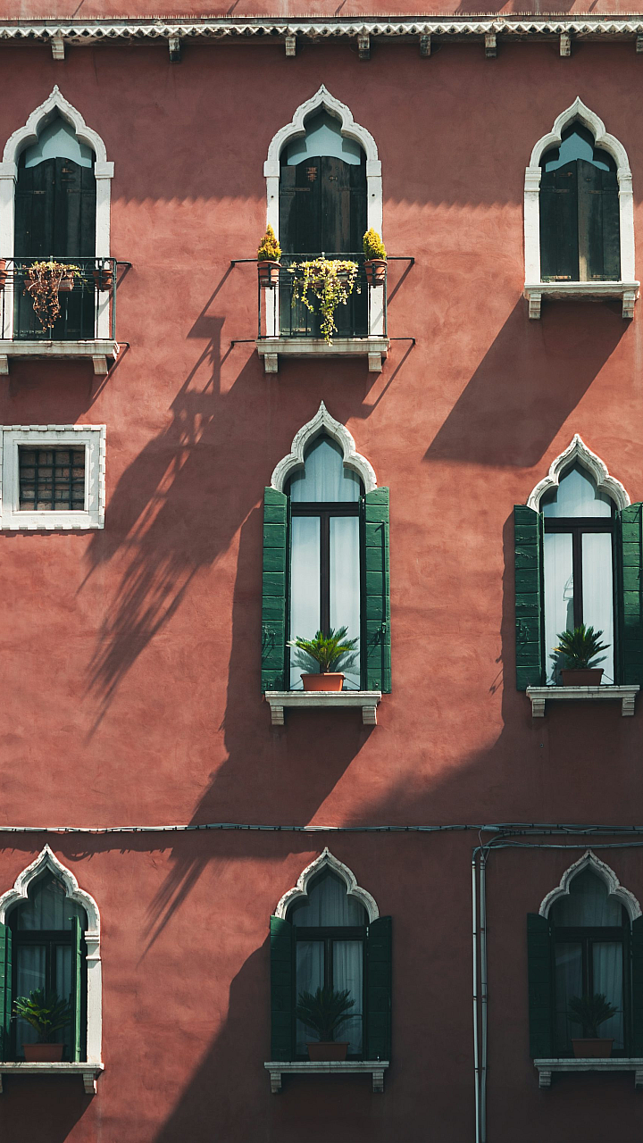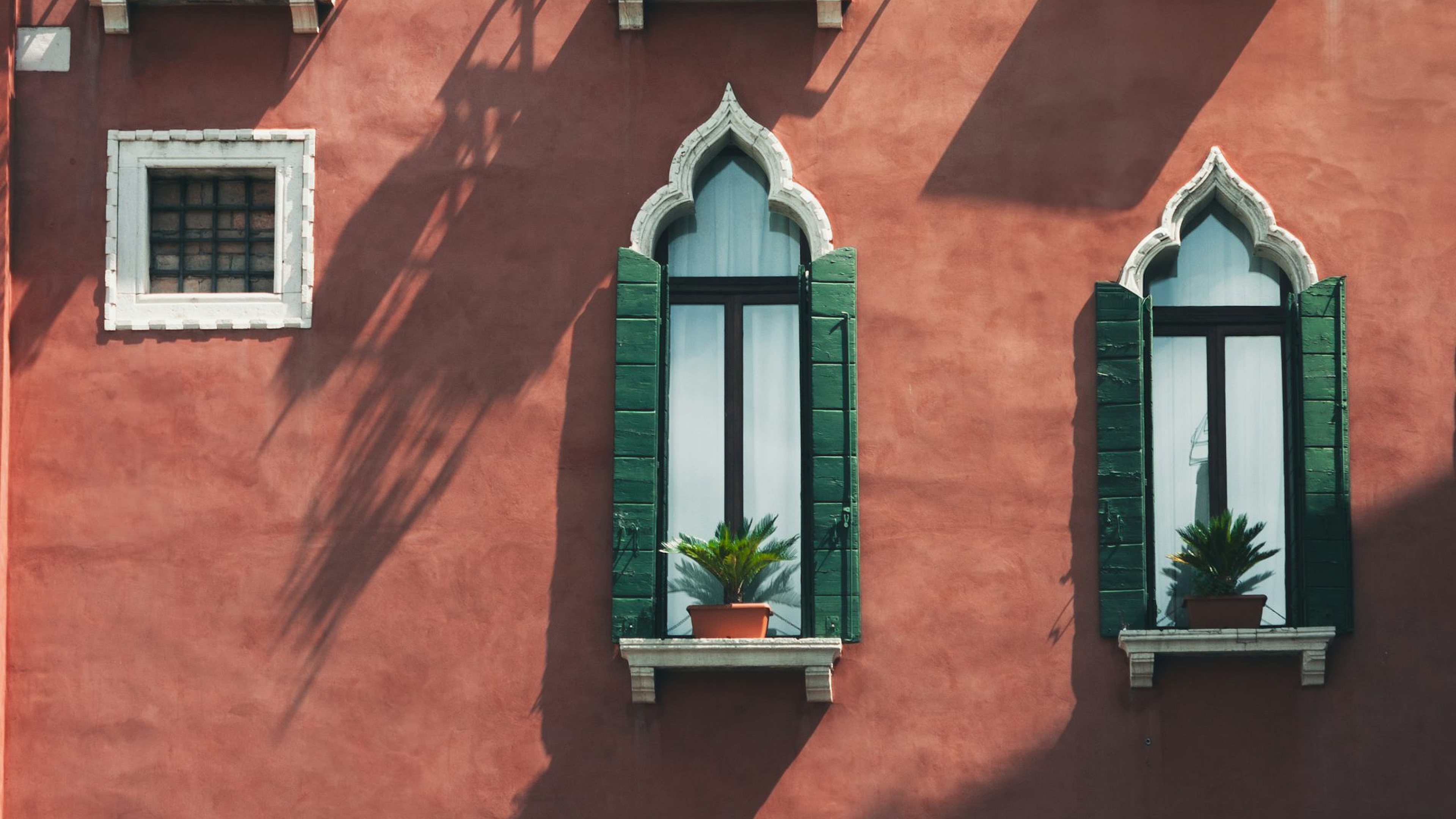 red building, green shutters, unique windows, architecture, wallpaper, building facade, red architecture, window design, vintage building, urban wallpaper