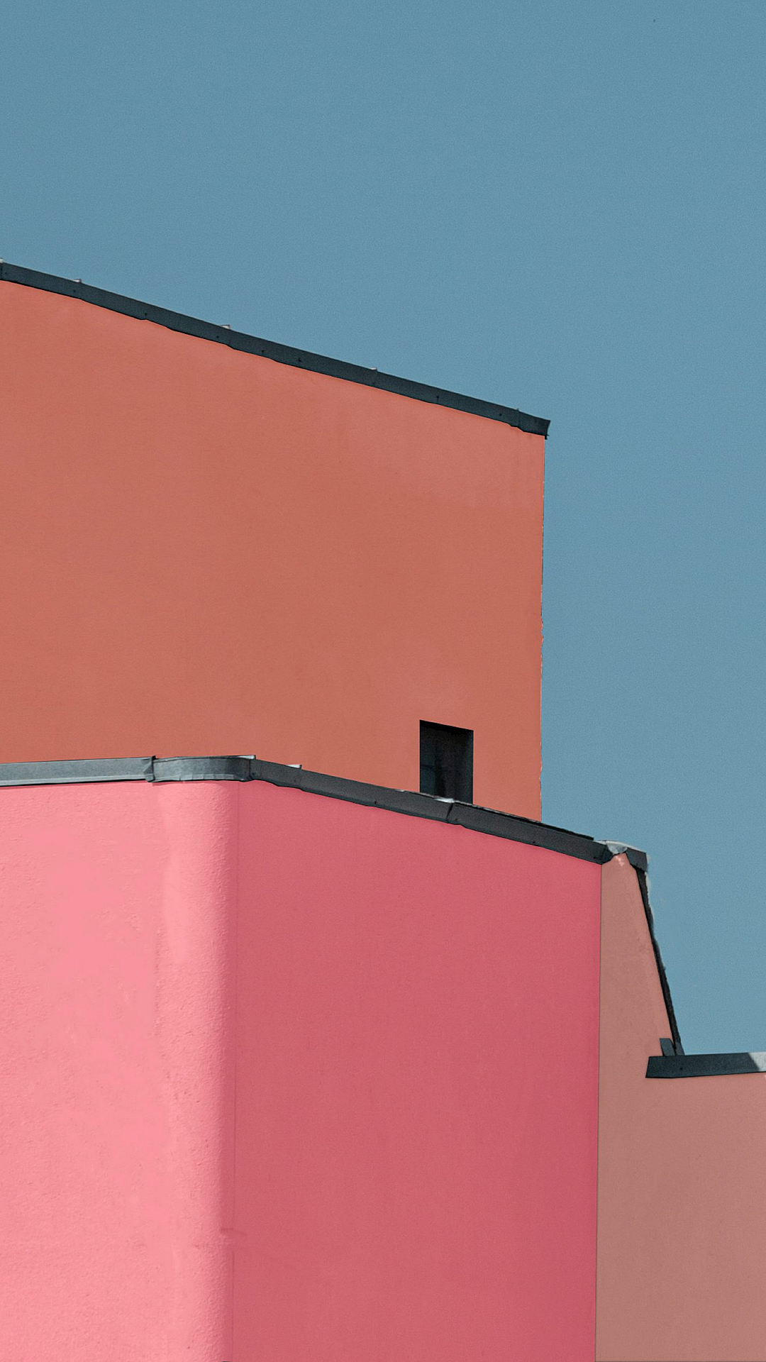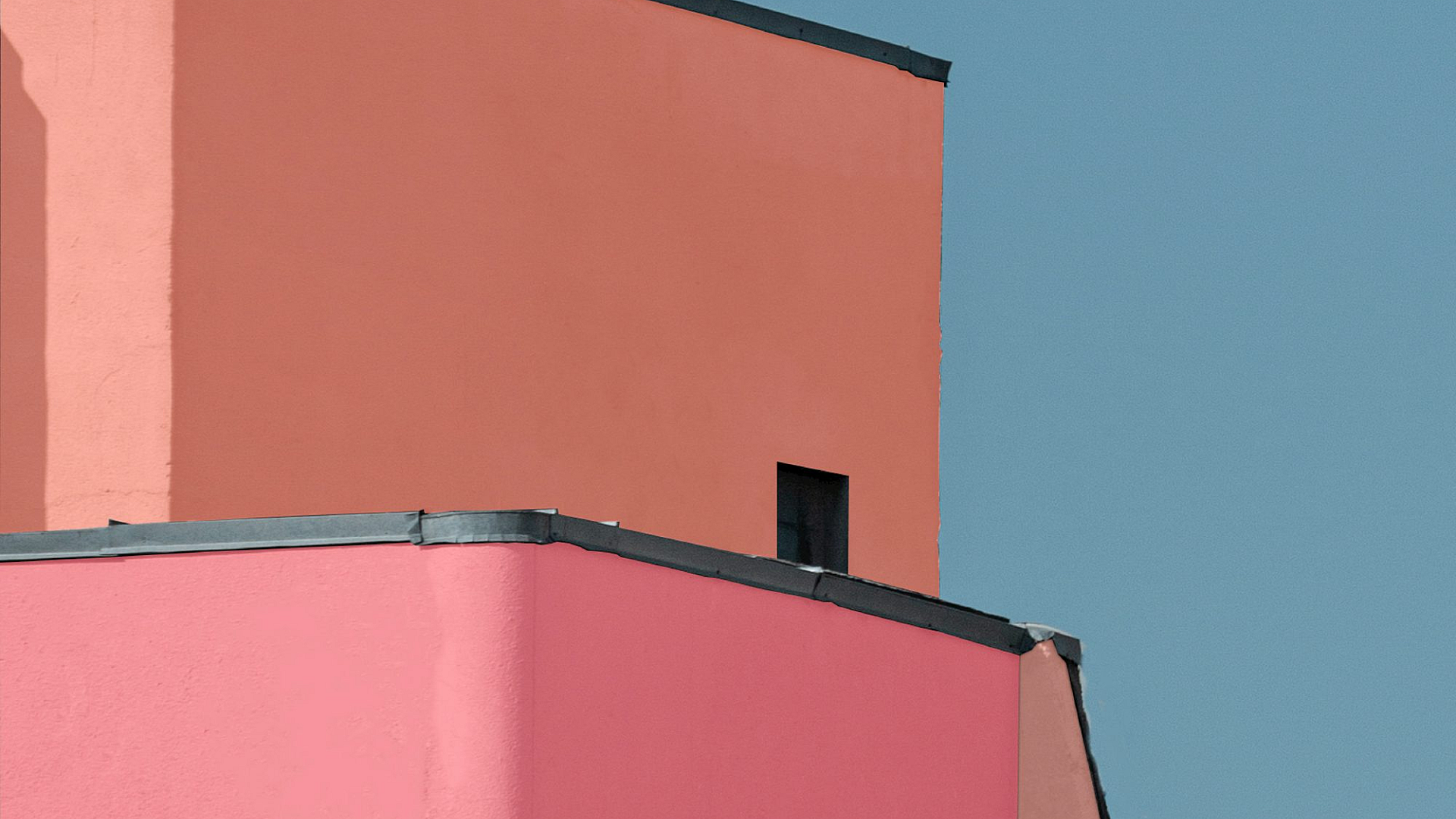 red building, blue sky, architecture, wallpaper, background, building, sky, scene, landscape, contrast