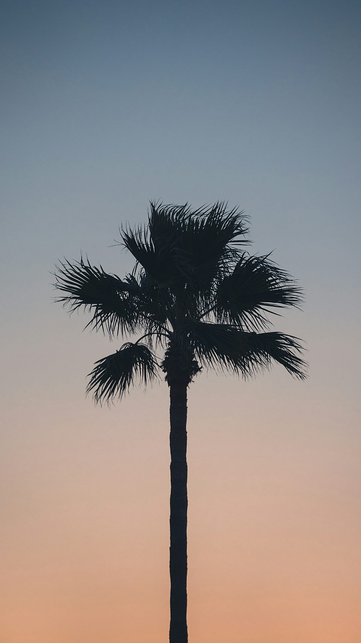 Wallpaper A Silhouette of a Palm Tree Against a Sunset Sky