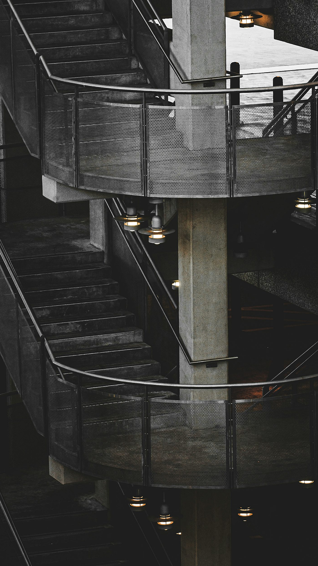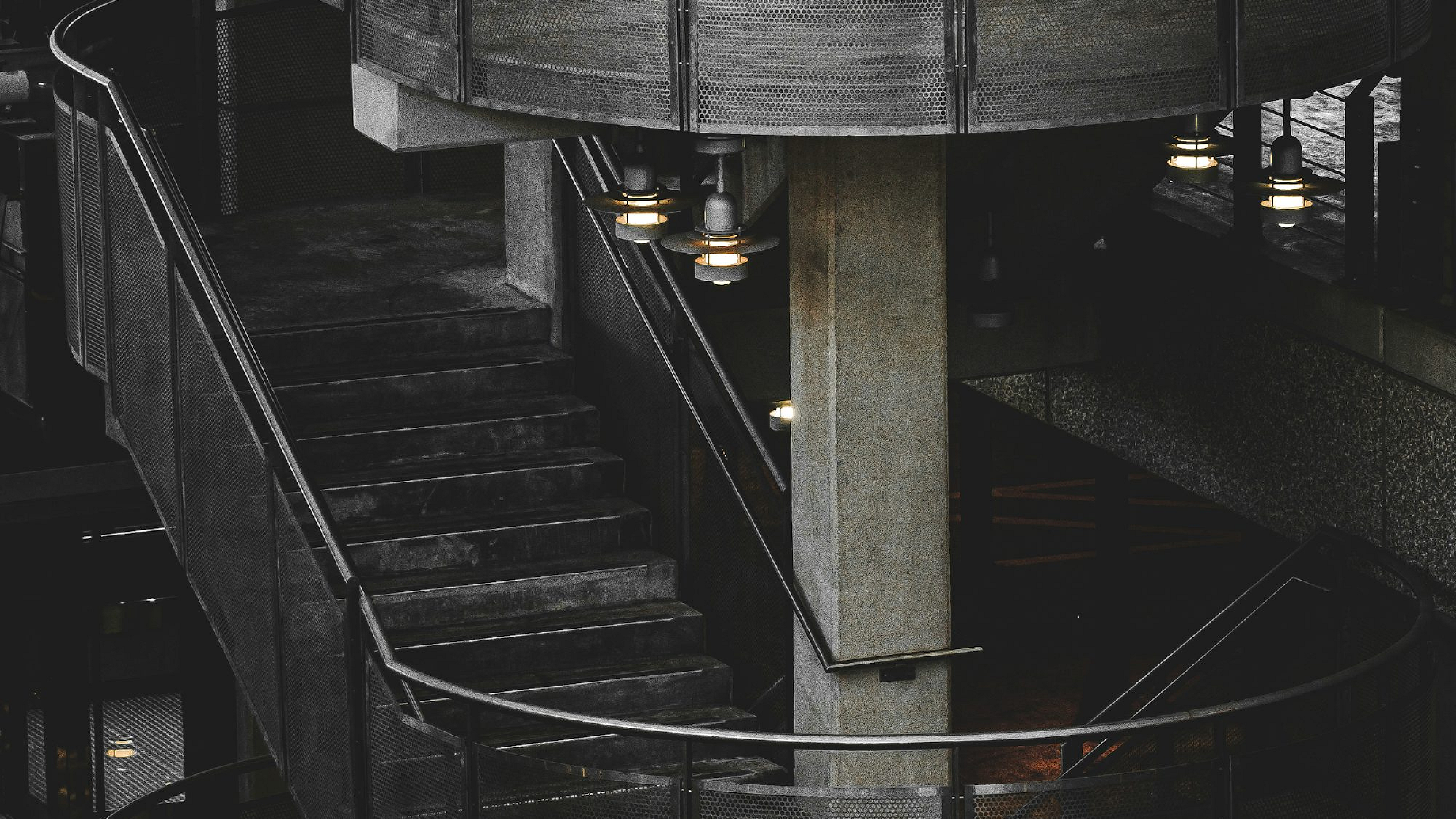 spiral staircase, building, lights, architecture, interior, design, wallpaper, night, illumination, modern