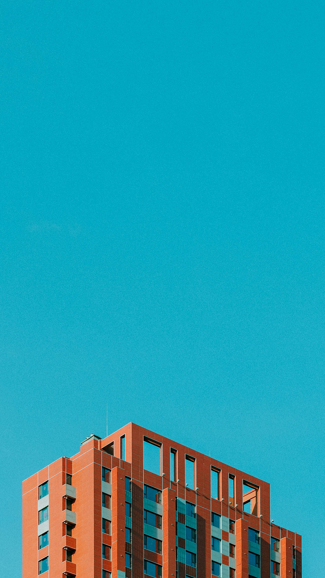 This wallpaper features a striking image of a brown high-rise concrete building standing tall against a vibrant blue sky. A perfect blend of urban and architectural aesthetics.