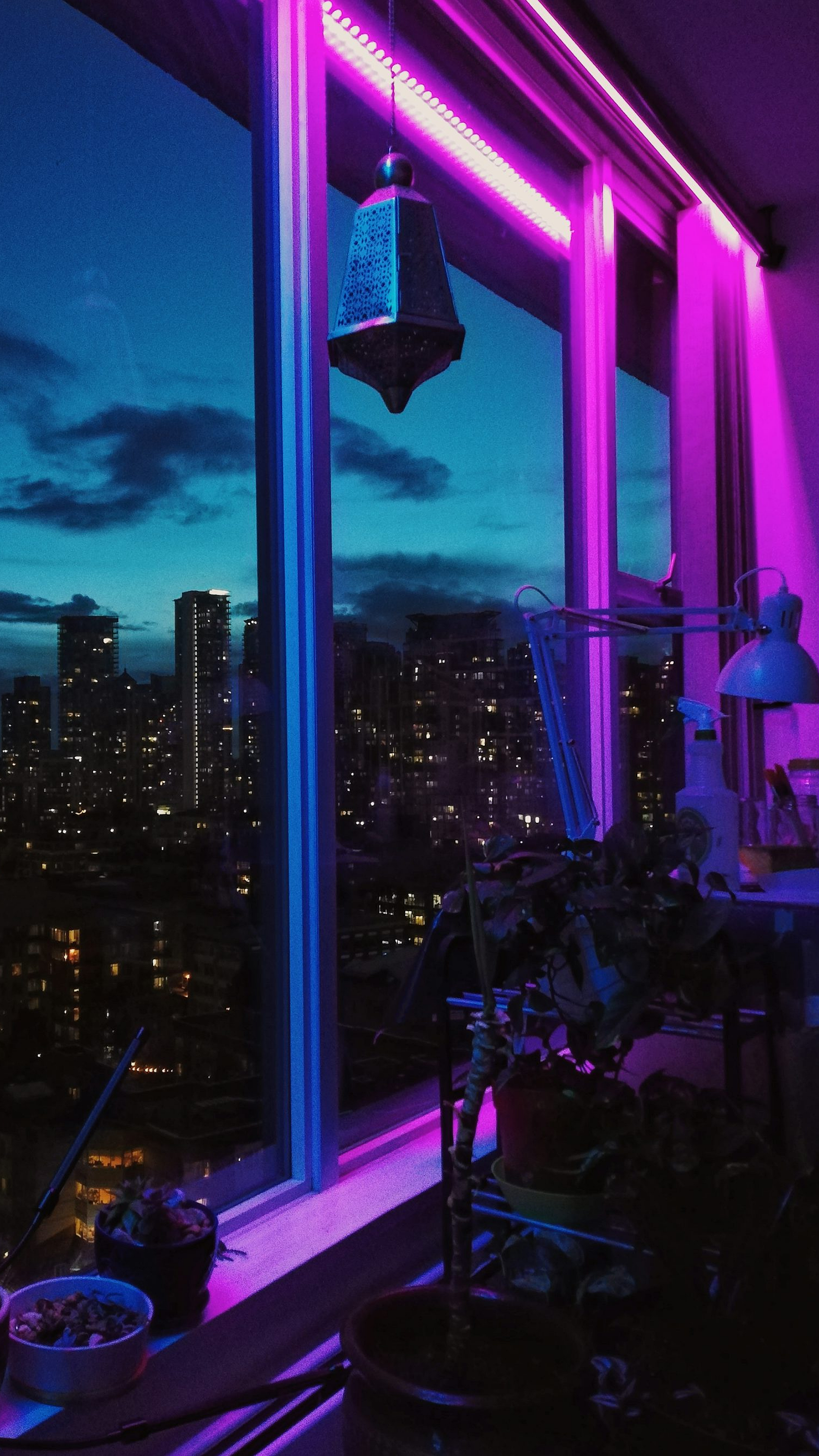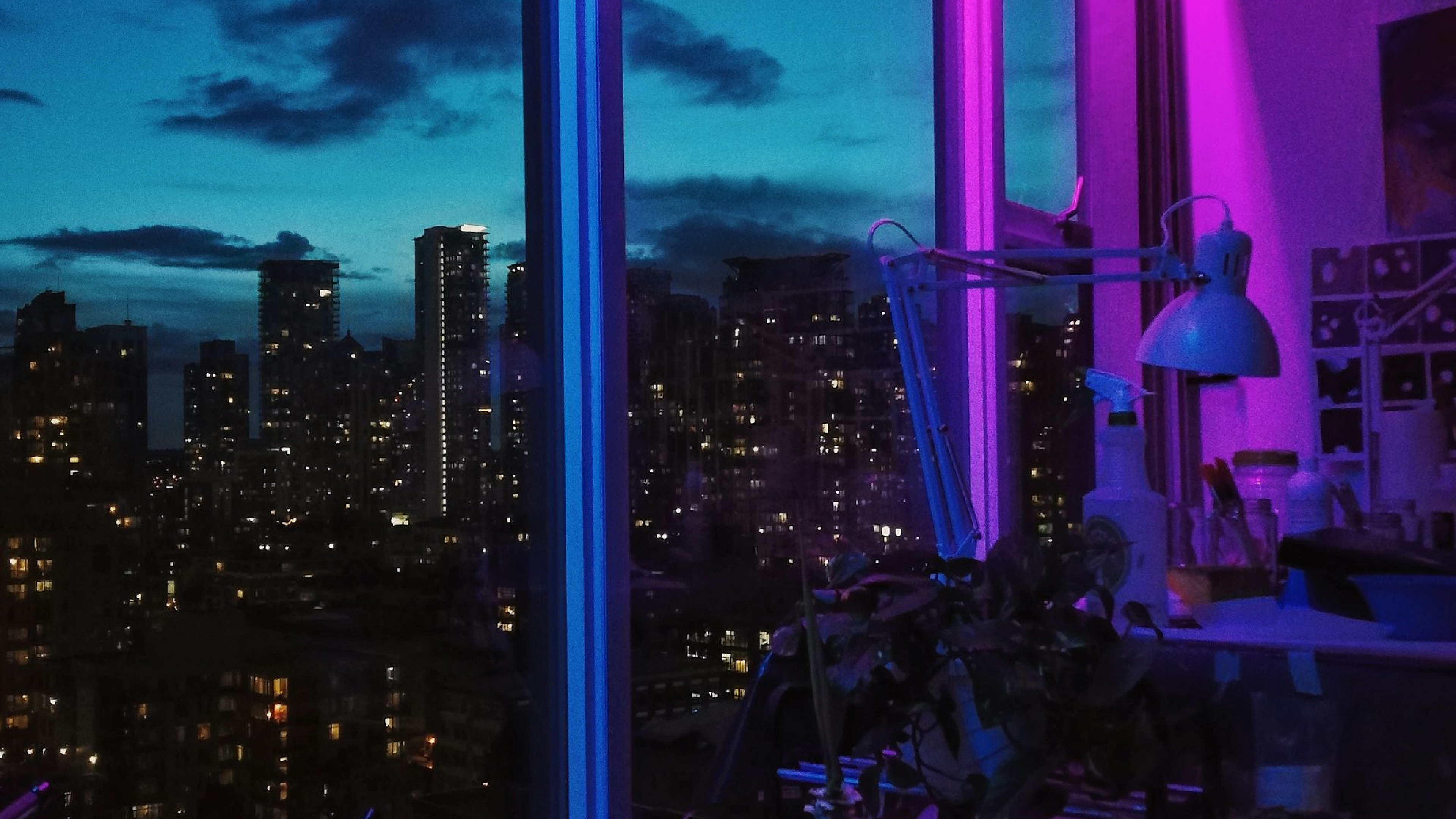 Experience the mesmerizing beauty of a city at night, illuminated by the glow of countless high-rise buildings. This wallpaper captures the vibrant energy of urban life after dark.