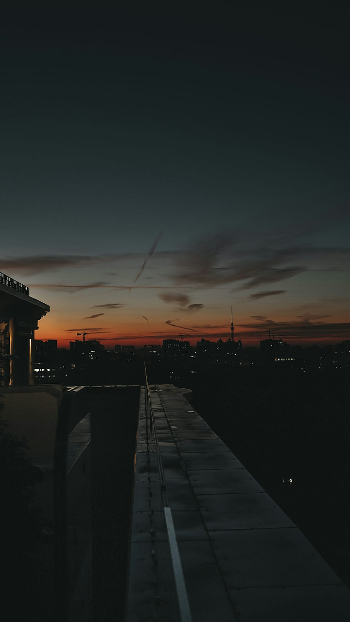 A stunning wallpaper featuring a gray concrete road stretching into the distance as the sun sets, casting a warm, golden glow. Perfect for a desktop or mobile background.