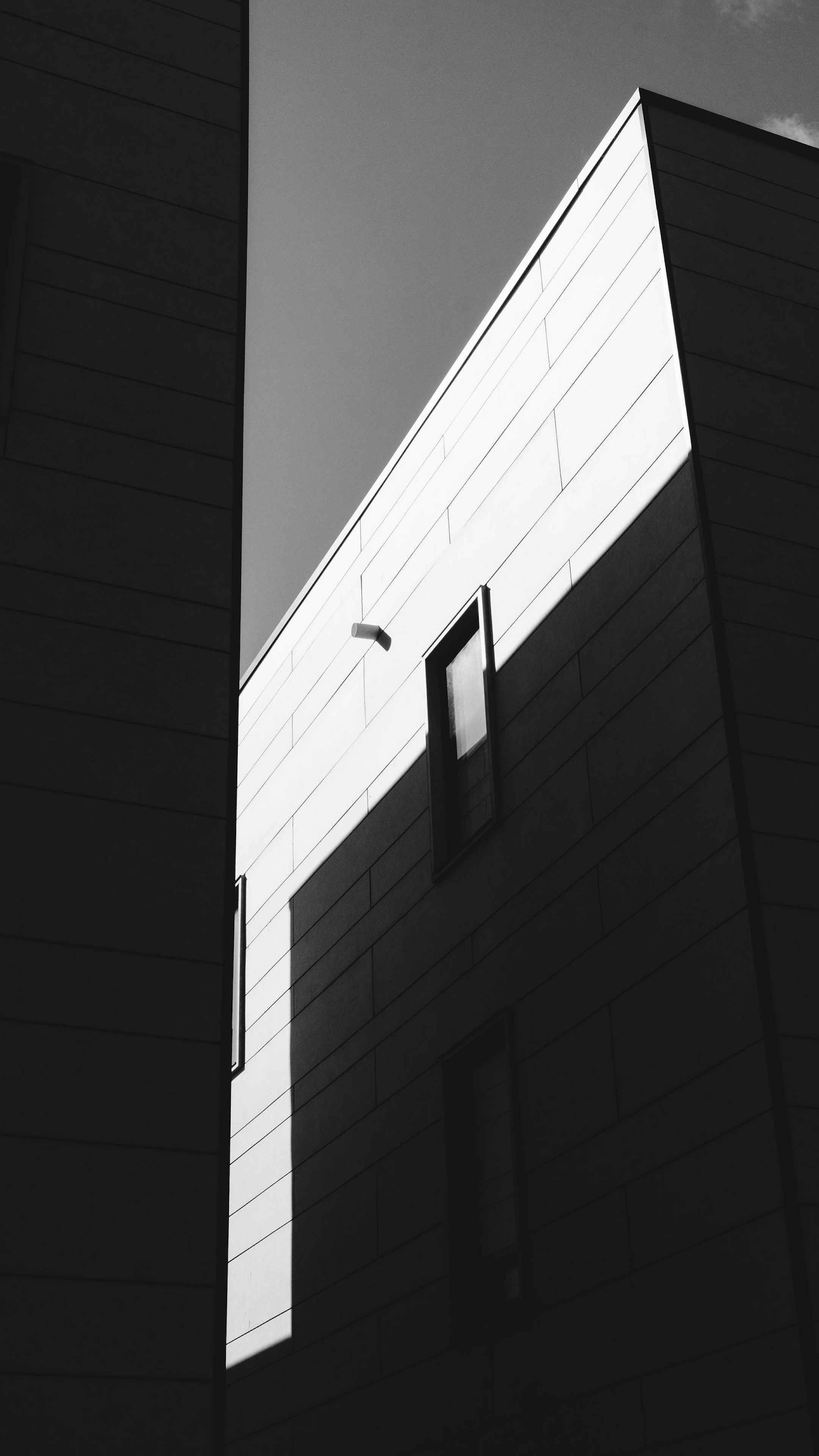 A stunning grayscale image of a concrete building, perfect as a minimalist wallpaper. The texture and architecture are beautifully captured.