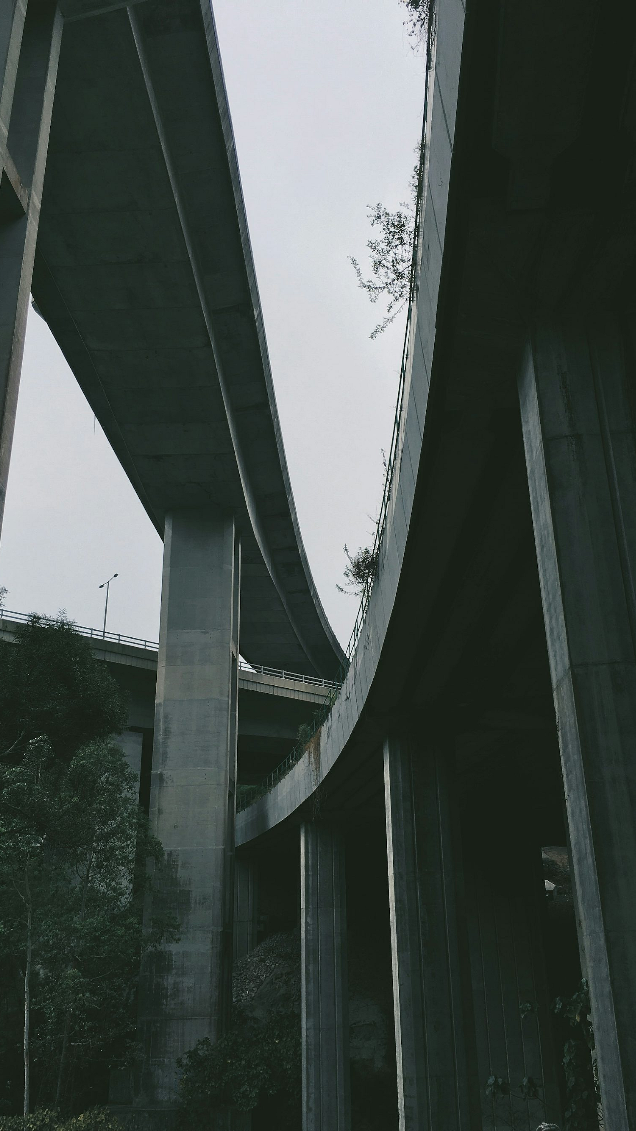 grey scale, low angle, concrete bridge, architecture, wallpaper, grey, bridge, photography, monochrome, abstract