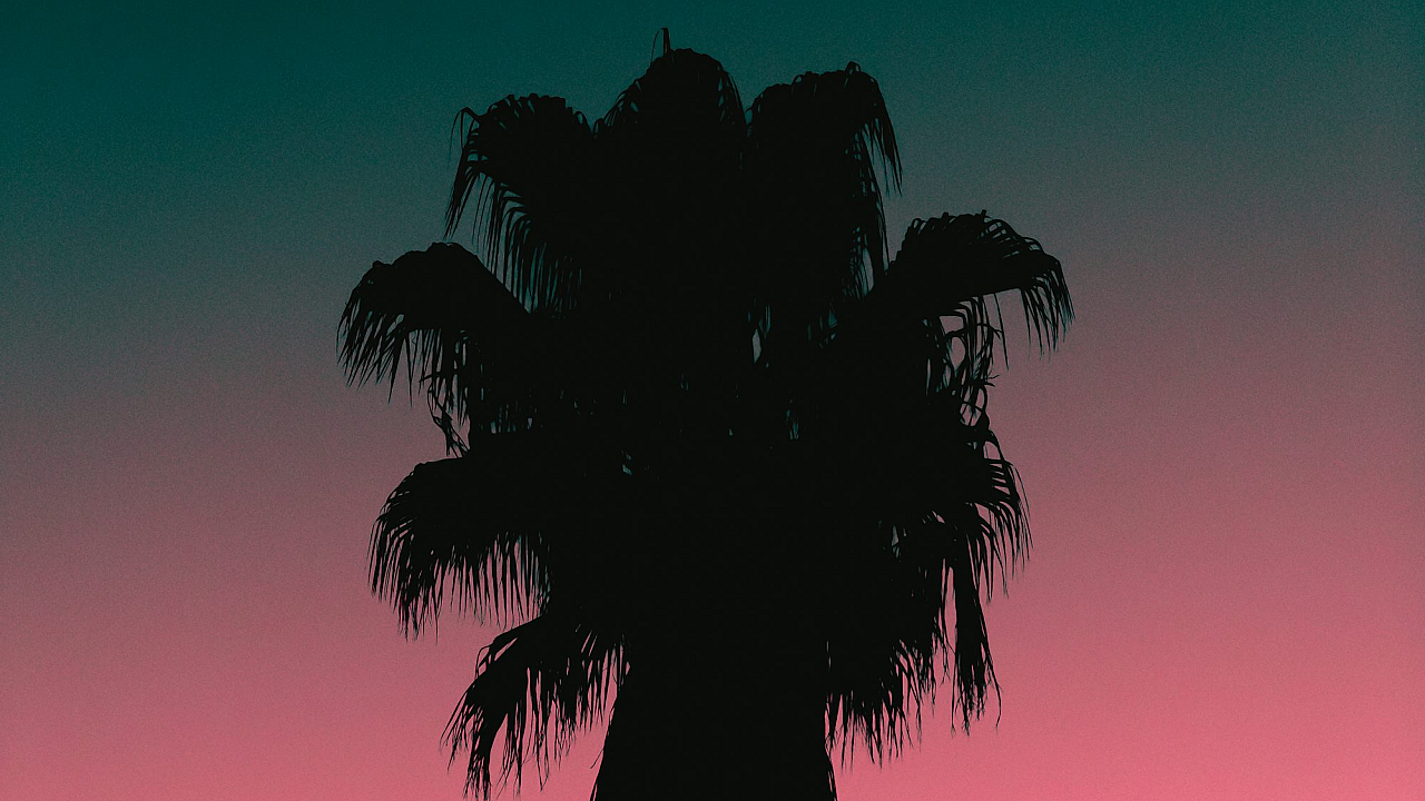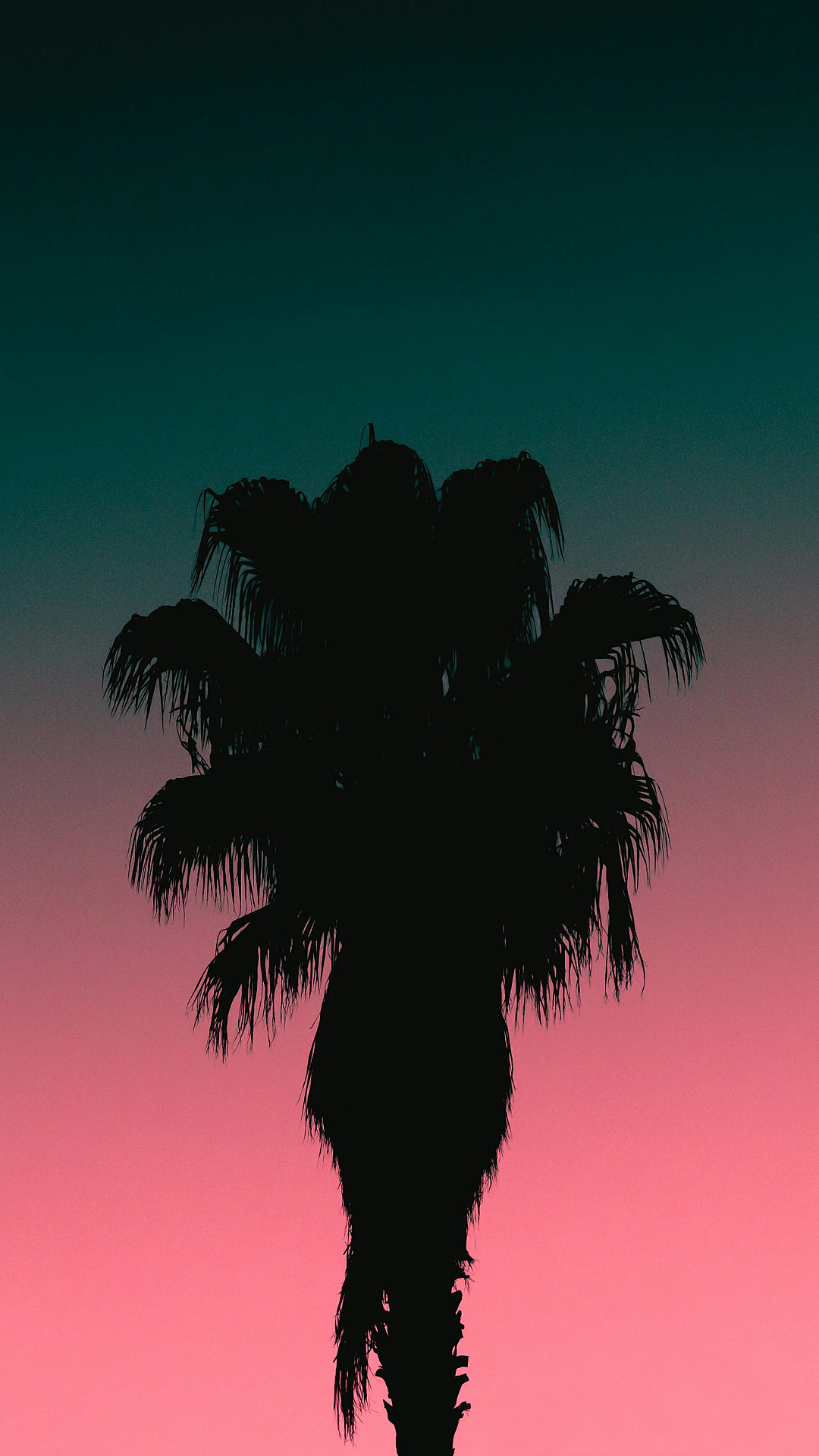 A captivating silhouette of a palm tree set against a vibrant sunset. This wallpaper offers a serene and tropical escape, perfect for any desktop or mobile device.